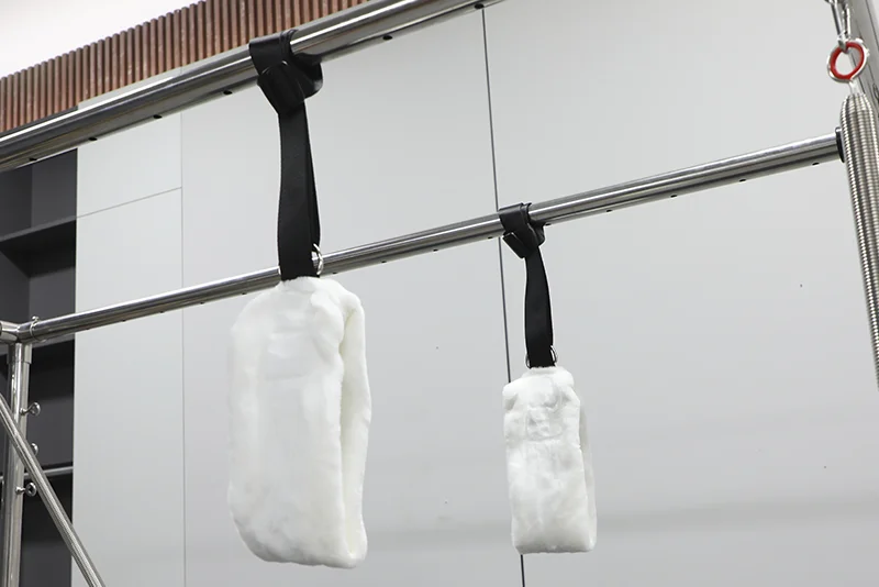 SAERDE SED-LB7 Pilates Cadillac Bed is made from imported Beech wood, ensuring durability and longevity. It features a professional leather-coated box for flexibility and comfort, an adjustable button for customizable height, and a perfectly polished arc shape to prevent injuries. The equipment is designed for fitness studios, clubs, wellness centers, and hospitals, supporting strenuous Pilates movements with its sturdy structure and additional equipment like stirrups and a trapeze.